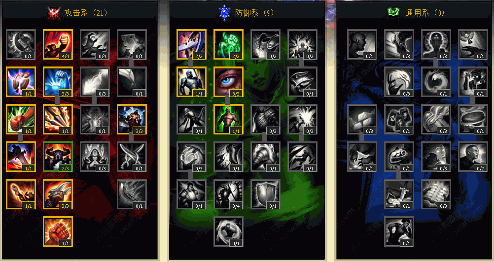贾克斯进入一个最多持续2秒的防御姿态,能够躲闪掉一切即将到来的普通攻击,并且减少25/25/25/25/25%来自范围技能的伤害。